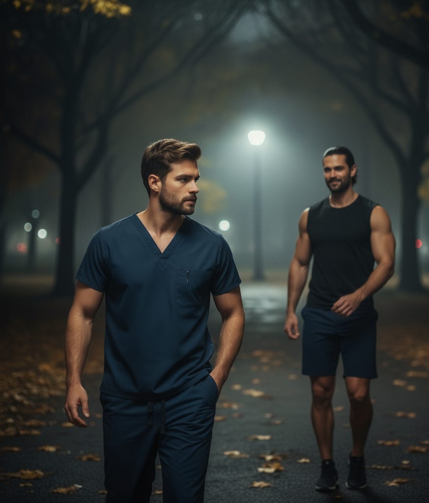 He was near the east path. Tall. You could see the muscular build even in the shadows, broad shoulders that filled out his jacket. He was walking with the same restless energy I felt. He wasn’t lost. He was looking.